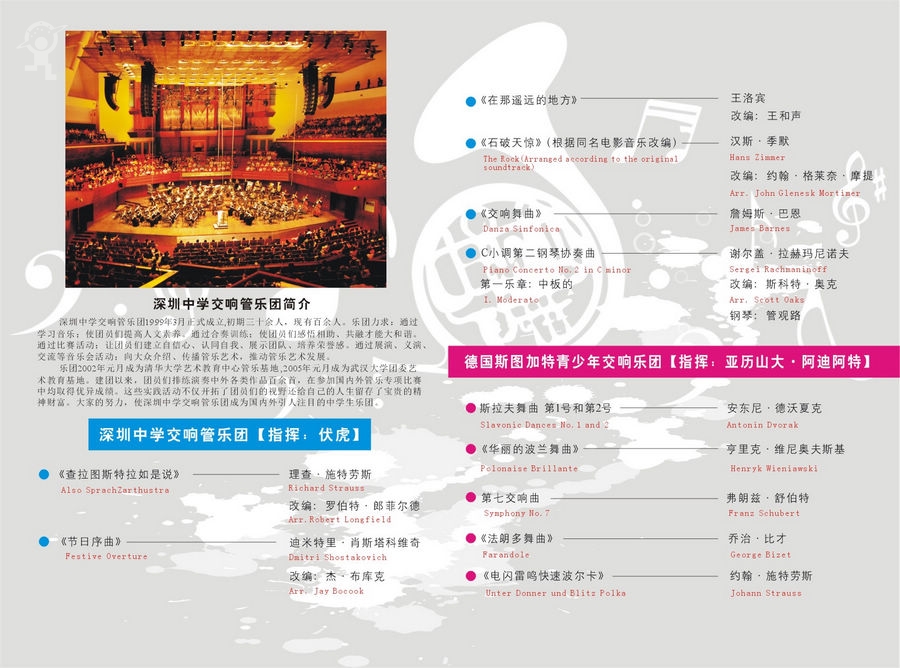 由团市委、市科协、市少工委联合主办,市少年宫承办的“2014深圳青少年科学与艺术节”活动自六一节期间启动以来,已连续推出了各类青少年公益活动近20项,深受广大青少年欢迎。近期,“科艺节”又为青少年朋友们准备了一场重量级的交响管乐艺术大餐——“黑骏马奔寻鹏城情”青少年管乐交流音乐会将于8月7日下午14:00—16:00在少年宫剧场隆重上演。此次演出由德国斯图加特青少年交响乐团与深圳中学交响管乐团为大家联袂奉献。