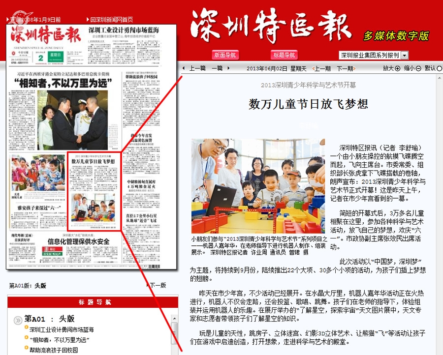 〖深圳特区报〗2013深圳青少年科学与艺术节开幕