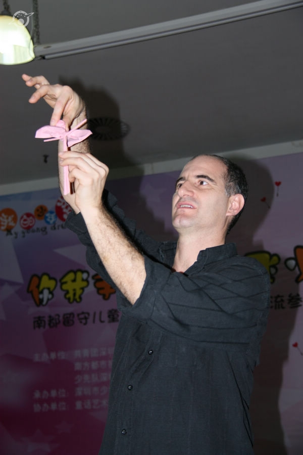 当天,市少年宫还邀请到了阿根廷的传统木偶表演艺术家奥玛-阿尔瓦雷斯先生,现场跟孩子们表演《滑稽的木偶》。