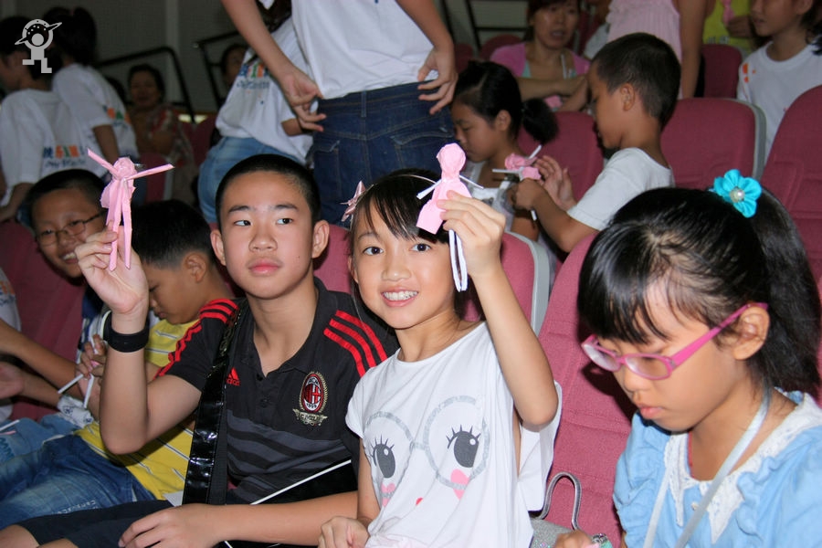 表演完毕,他还现场教孩子们做起木偶来,在动手的过程中,两地孩子互相帮忙,有人负责折纸,有人负责粘贴,大家忙得不亦乐乎。