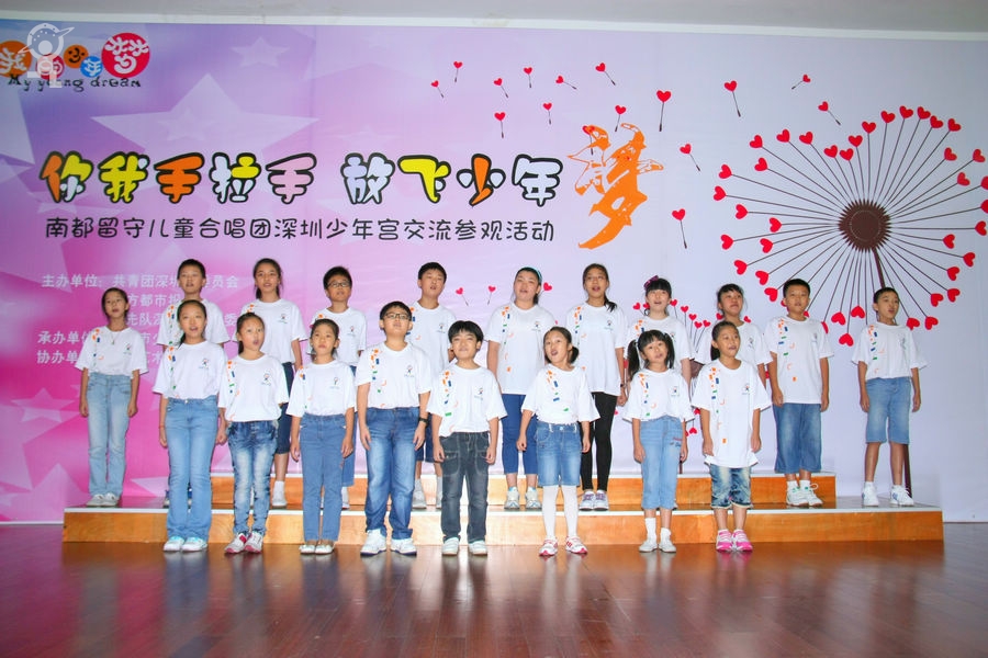 在2013年第五届南都留守儿童“圆梦行动”即将圆满落幕之际,昨日,共青团深圳市委、深圳市少工委联合南方都市报共同举办“圆梦行动”之“你我手拉手放飞少年梦”活动,邀请到第二届南都留守儿童合唱团35名成员走进少年宫,首次与深圳的孩子一起同台交流,缔结友谊。