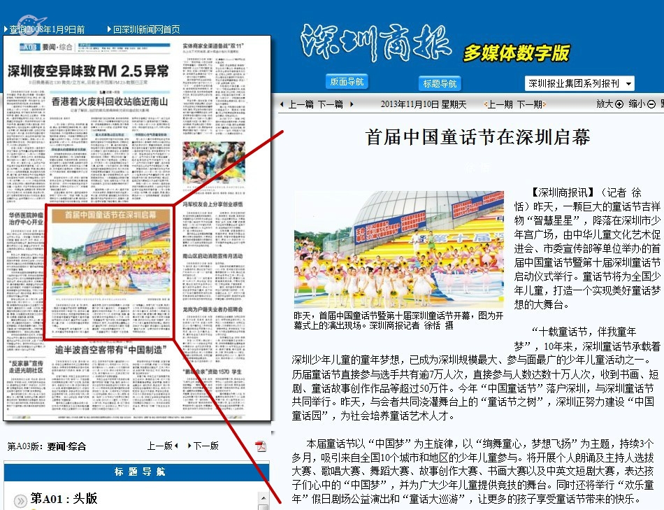 “十载童话节,伴我童年梦”,10年来,深圳童话节承载着深圳少年儿童的童年梦想,已成为深圳规模最大、参与面最广的少年儿童活动之一。历届童话节直接参与选手共有逾7万人次,直接参与人数达数十万人次,收到书画、短剧、童话故事创作作品等超过50万件。今年“中国童话节”落户深圳,与深圳童话节共同举行。昨天,与会者共同浇灌舞台上的“童话节之树”,深圳正努力建设“中国童话园”,为社会培养童话艺术人才。