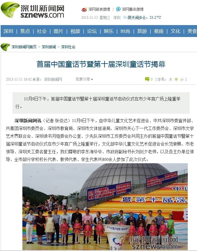〖深圳新闻网〗首届中国童话节暨第十届深圳童话节揭幕
