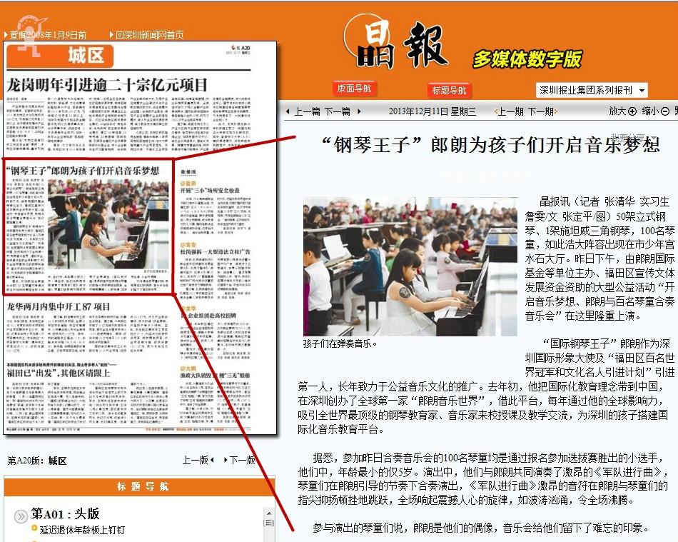 〖晶报〗“钢琴王子”郎朗为孩子们开启音乐梦想