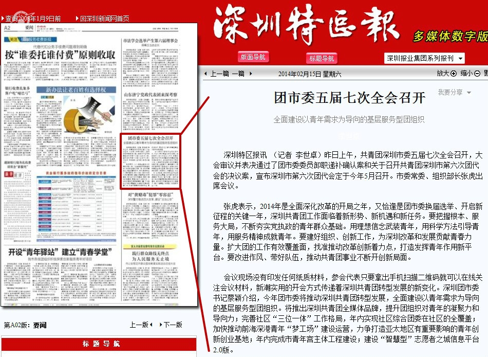 会议现场没有印发任何纸质材料,参会代表只要拿出手机扫描二维码就可以在线关注会议材料,新潮实用的开会方式传递着深圳共青团转型发展的新变化。深圳团市委书记蔡颖介绍,今年团市委将推动深圳共青团转型发展,全面建设以青年需求为导向的基层服务型团组织。将推出深圳共青团全媒体品牌,提升团组织对青年的凝聚力和导向力;完善社区“三位一体”工作格局,年内实现社区综合团委在社区的全覆盖;加快推动前海深港青年“梦工场”建设运营,力争打造亚太地区有重要影响的青年创新创业基地;年内完成市青年宫主体工程建设;建设“智慧型”志愿者之城信息平台2.0版。