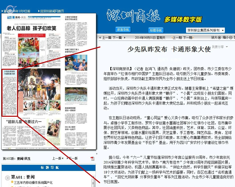 活动当天,深圳市少先队卡通形象大使正式发布。随着主背景板上“希望之窗”缓缓拉开,深圳市少先队员卡通形象大使“鹏仔”、“小晨”出现在小朋友们面前。同时,一众经典动画中的卡通人偶簇拥着“鹏仔”、“小晨”来到台上,与领导嘉宾一起,为孩子们赠送深圳市少先队卡通形象大使纪念品,并和现场小朋友一起游戏互动。