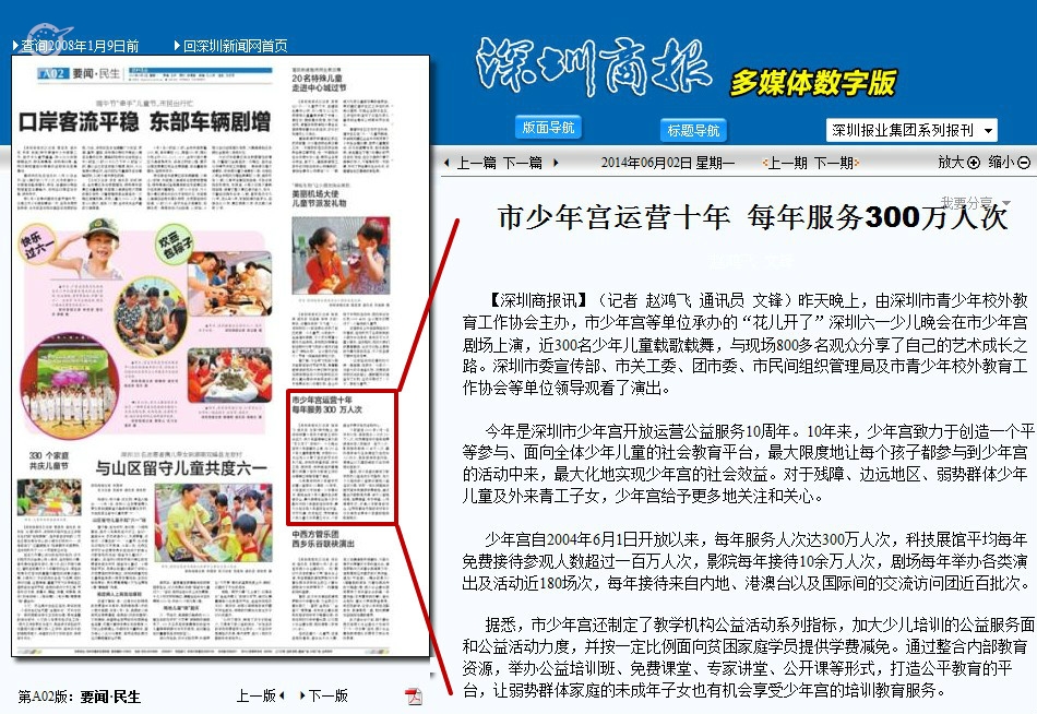 〖深圳商报〗市少年宫运营十年 每年服务300万人次