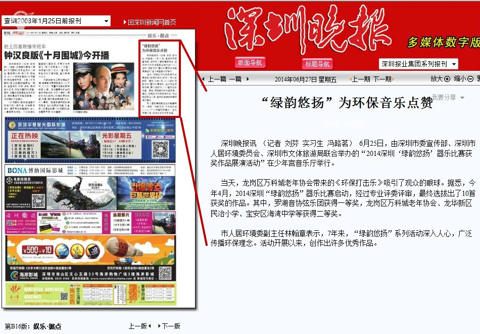 〖深圳晚报〗“绿韵悠扬”为环保音乐点赞