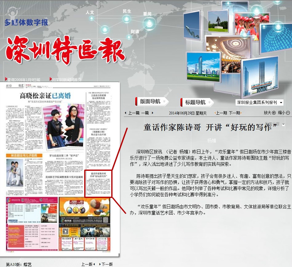 〖深圳特区报〗童话作家陈诗哥开讲“好玩的写作”