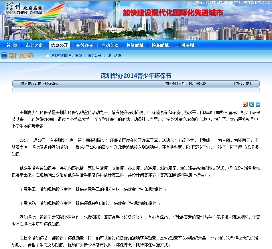 〖深圳政府在线〗深圳举办2014青少年环保节