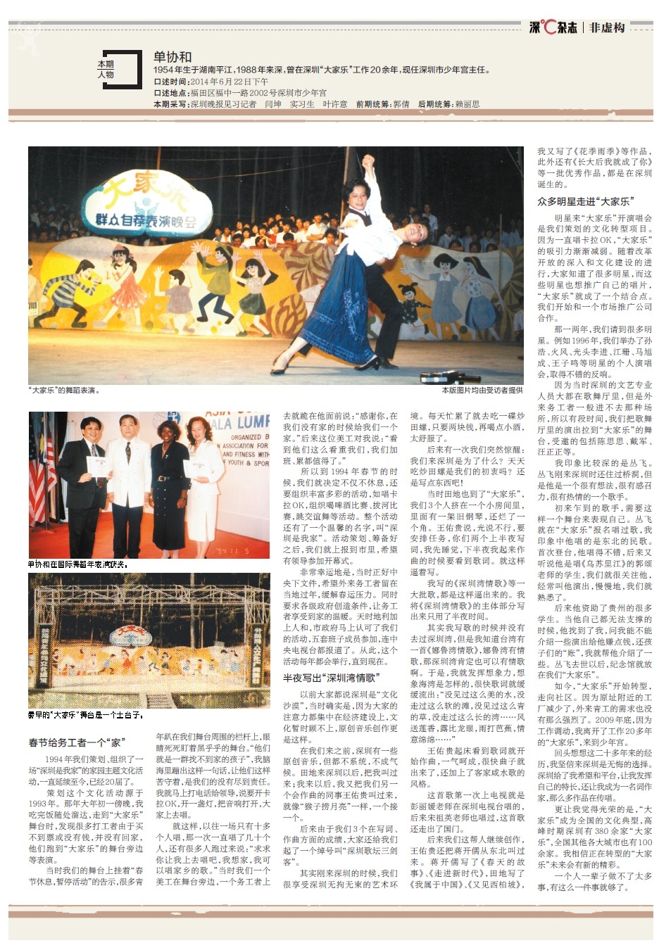 1994年我们策划、组织了一场“深圳是我家”的家园主题文化活动,一直延续至今,已经20届了。