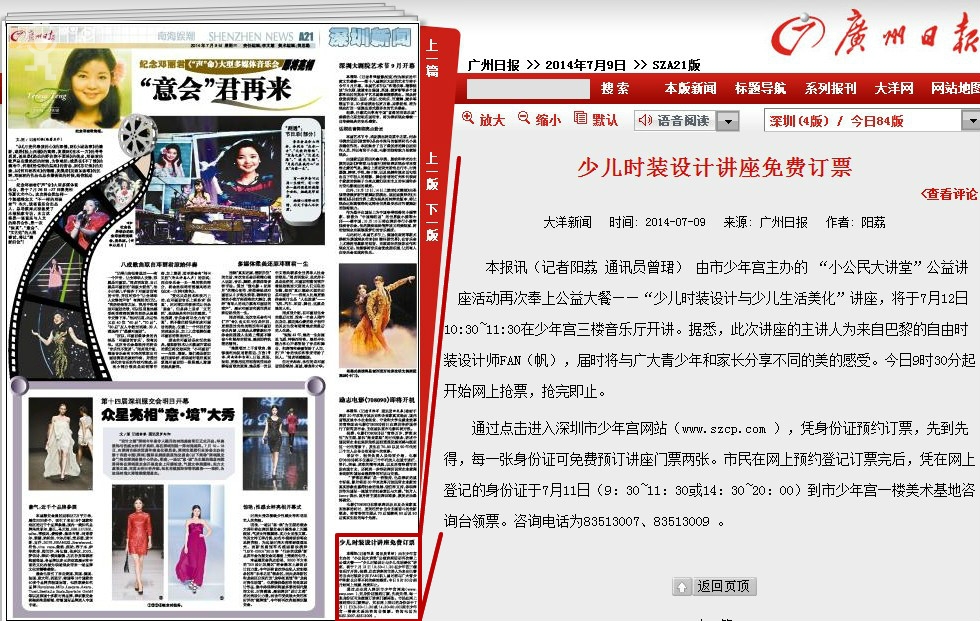 本报讯(记者阳荔 通讯员曾珺) 由市少年宫主办的 “小公民大讲堂”公益讲座活动再次奉上公益大餐——“少儿时装设计与少儿生活美化”讲座,将于7月12日10:30~11:30在少年宫三楼音乐厅开讲。据悉,此次讲座的主讲人为来自巴黎的自由时装设计师FAN(帆),届时将与广大青少年和家长分享不同的美的感受。今日9时30分起开始网上抢票,抢完即止。