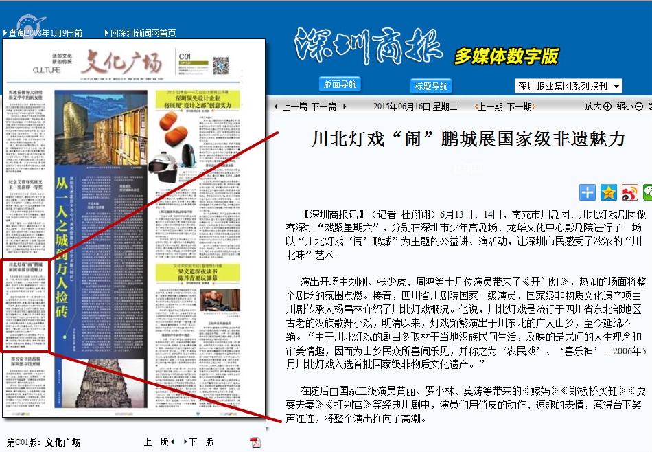 〖深圳商报〗川北灯戏“闹”鹏城展国家级非遗魅力