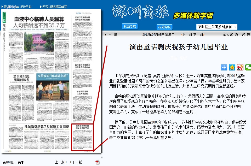 〖深圳商报〗演出童话剧庆祝孩子幼儿园毕业