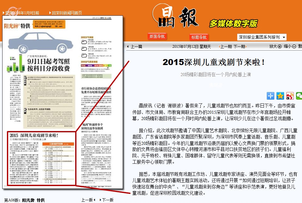 〖晶报〗2015深圳儿童戏剧节来啦!