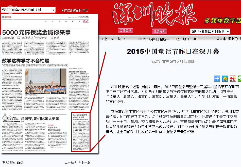 〖深圳晚报〗2015中国童话节昨日在深开幕