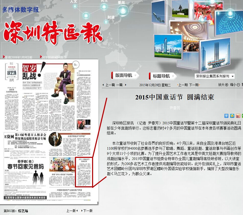 深圳特区报讯 (记者 尹春芳)2015中国童话节暨第十二届深圳童话节颁奖典礼日前在少年宫剧场举行。这标志着历时4个多月的中国童话节在本年度各项赛事活动圆满结束。