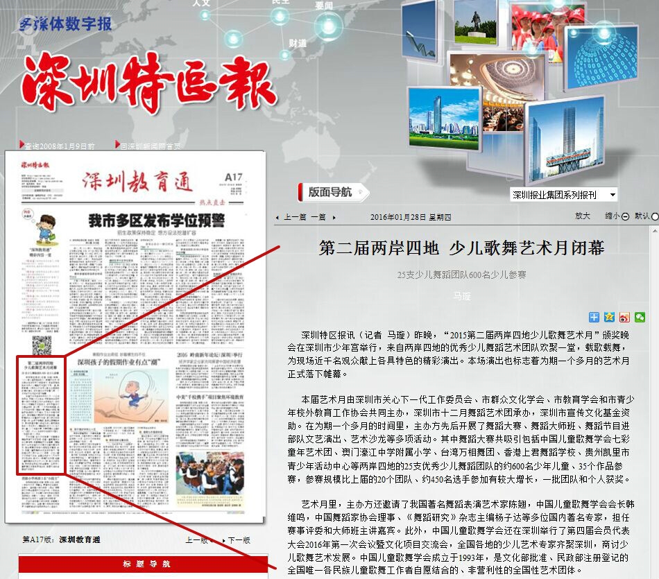 〖深圳特区报〗第二届两岸四地少儿歌舞艺术月闭幕