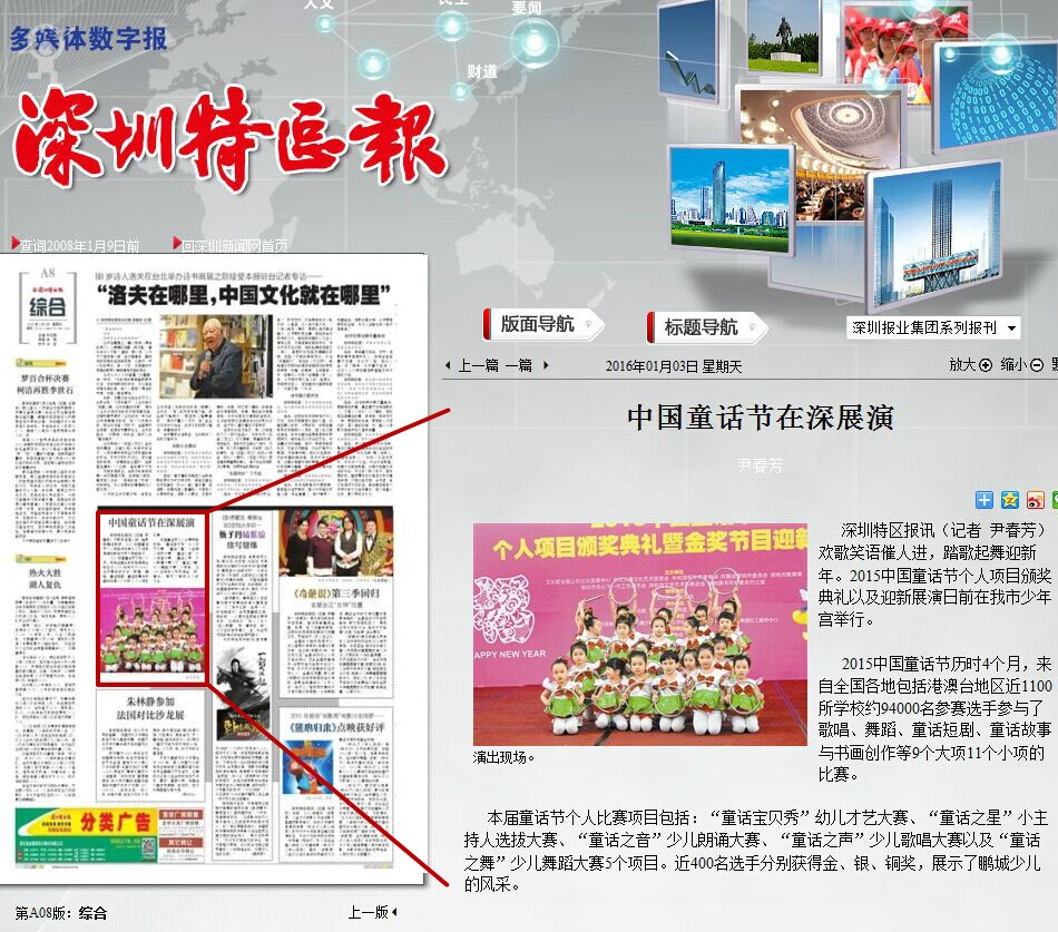深圳特区报讯(记者 尹春芳)欢歌笑语催人进,踏歌起舞迎新年。2015中国童话节个人项目颁奖典礼以及迎新展演日前在我市少年宫举行。