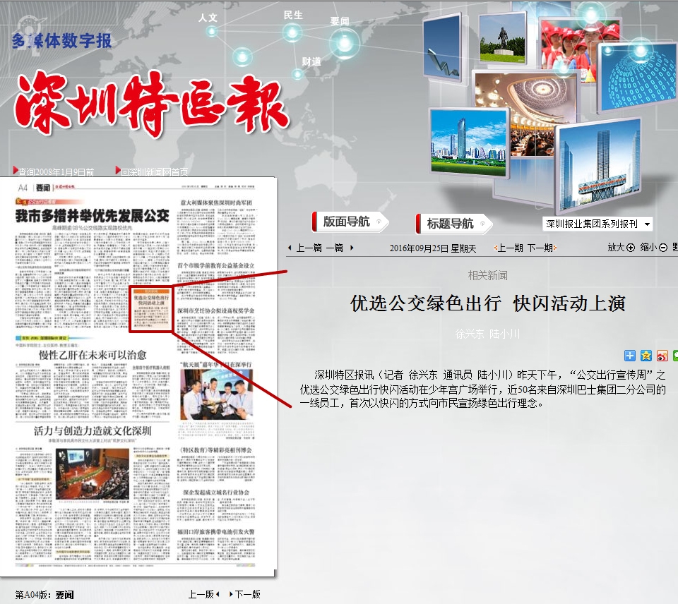 〖深圳特区报〗优选公交绿色出行快闪活动上演