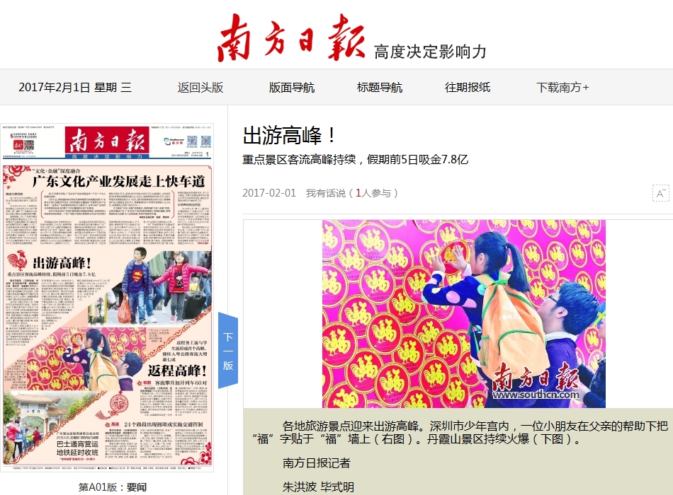 〖南方日报〗深圳市少年宫2017年春节公益活动周