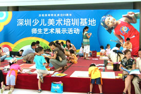 深圳少儿美术培训基地教学总监吴小燕介绍说,深圳市少儿美术培训基地代表了深圳少儿绘画的最高水平,这次活动受到团市委的高度重视。备受市民关注的少儿美术培训基地秋季招生以来,前来报名的家长和孩子排起了长队争抢学位,场面火爆。
