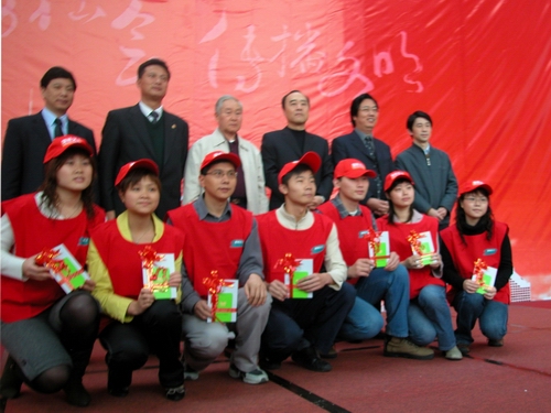 出席活动的领导和嘉宾为新义工戴上了义工帽,并赠送了《深圳义工服务条例》和《深圳义工联合会章程》,向他们加入义工队伍表示欢迎和祝贺。