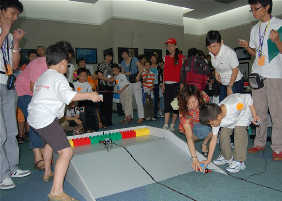 在少年宫二楼的蓓蕾厅,一场别开生面的家庭机器人挑战赛在这里举行。科普教育一直是少年宫运营中所体现出来的特色。本次比赛分为“完美复制”“夺宝奇兵”、“极速挑战”三个项目,一等奖获得者将代表深圳市参加年底全国总决赛并被授予深圳市少年科学院“小院士”荣誉称号。本次选拔赛,一方面让所有参与活动的孩子们,能够在六一这样一个轻松快乐的氛围里,学到许多科学知识,体验科学探索的过程,培养良好的科学态度,发展自身的创新能力和实践能力,激发起对科学探索的浓厚兴趣;另一方面让家长也能积极参与进来,与孩子们密切配合、相互协作,共同完成竞赛任务,从而不断地加深彼此之间的沟通交流、了解信任,营造社会和家庭的和谐氛围,引导社会和家庭都来崇尚科学、投身科学。现场参加比赛的一位张女士说:“平时我和先生工作都很忙,很难有这样的机会和孩子一起参加游戏,少年宫举办的这种活动,不但让孩子们从玩中学到科学知识,培养了他的动脑、动手能力开发了他创新思维和创造能力,还在全家人的共同参与、致力取胜的齐心合力中增进了家庭成员彼此间的感情。”
