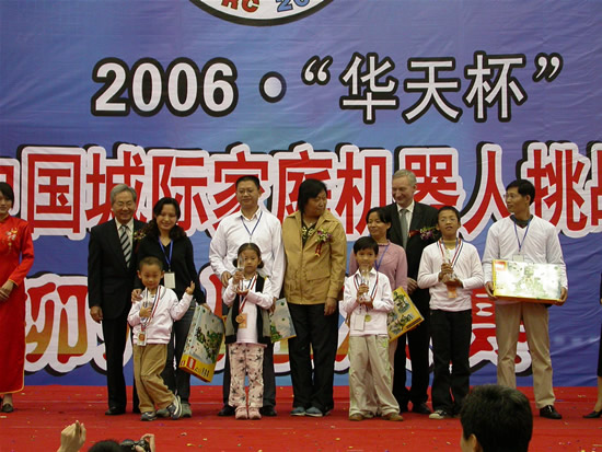 11月18日,深圳市少年宫机器人代表队在广西柳州参加“2006首届中国城际家庭机器人挑战赛”,技压群芳、配合默契,获得全部四大项比赛中两个项目的金牌,同时荣获“优秀科技团队”奖!