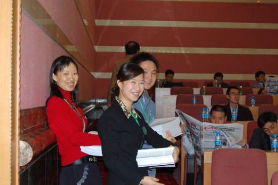 科普志愿者协助承担了大会的签到、派发会议资料、引导入场等工作