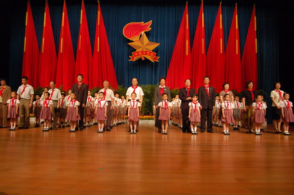 此次会议安排了别开生面的“重温少先队入队仪式”,由市领导和老同志与新老少先队员同台参加,并为新入队的少先队小朋友佩带红领巾,场面热烈庄重,十分感人。