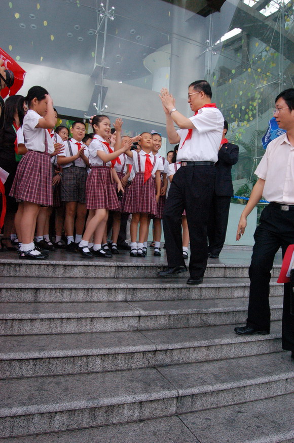 在和少先队员代表愉快地合影留念后,李鸿忠亲切地对孩子们说:“今天,深圳市第五次少代会胜利召开,这是你们的盛会;明天是‘六一’儿童节,是你们的节日。今天我们专门来看望大家,我代表市委市政府,向大会的召开表示祝贺,向全市少年儿童致以节日的问候。”