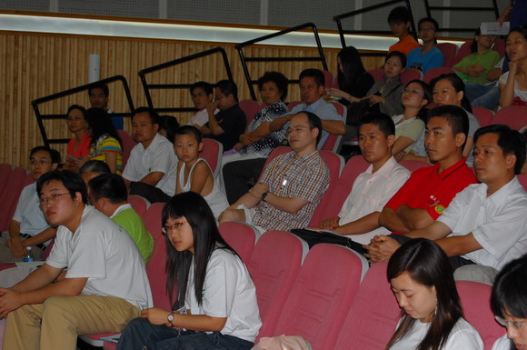 科普志愿者们聚精会神的聆听北大师生的宣讲