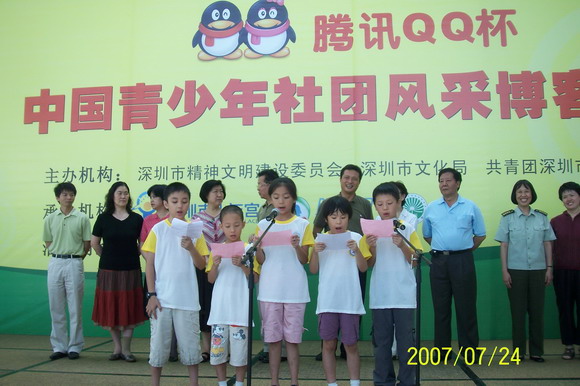 昨日(7月24日)上午,“腾讯QQ杯”中国青少年社团风采博客大赛在市少年宫拉开帷幕。本次大赛由深圳市精神文明建设委员会、深圳市文化局、共青团深圳市委员会主办,深圳市少年宫、腾讯网及深圳市科普志愿者协会承办,是“七彩年华•第二届深圳市未成年人道德教育活动月”重点活动之一。