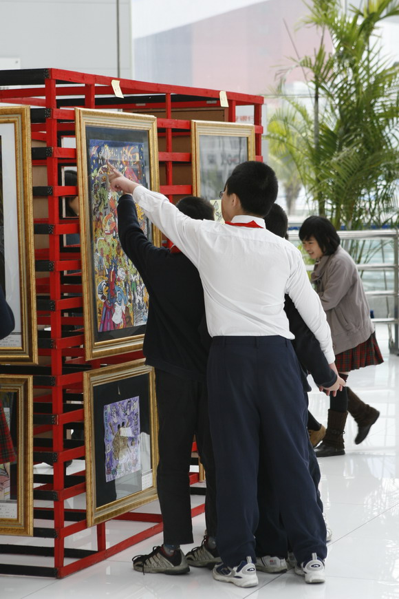 昨天开幕式后,入选的两百多幅作品将在少年宫持续展出十天,免费供广大市民参观欣赏,为青少年送上一场设计视觉盛宴。