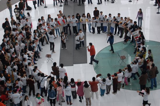 昨天下午,在寒冷的天气下,近90名领袖训练营的营员从训练基地回到少年宫,兴高采烈地和他们的爸爸妈妈在大厅做了亲子活动,并举办结营仪式。