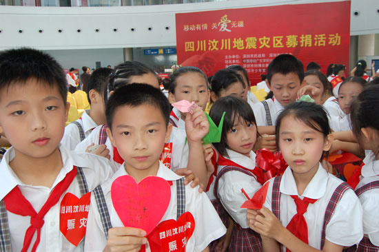 此次募捐活动由市民政局、市慈善会联合主办,深圳移动冠名支持。在市少年宫水晶石大厅,福田区荔园小学、市服装行业协会、叶子服装、曼娅奴、特灵通数码通讯等十多家单位争相捐出善款,各界代表纷纷发送手机红段子表达对灾区人民的支持和祝福。