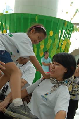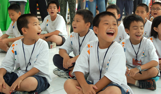 亲子活动中,营员们向家长和观众展示了他们的风采,还进行了拉歌。在“信任圈”活动中,穿着同样营服的家长和孩子们一起拉起大绳索围成信任圈,团结一致支持着在上面行走的孩子和家长。参加活动的家长和孩子同样兴奋,彼此的支持和信任在活动中体现、升华。尤其是走上信任圈的家长看到在圈里支持他们的竟然是他们小小的孩子,还有互不相识的其他家长,都觉得感动和感激。