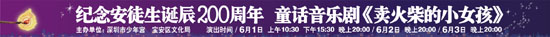 作为“六一”系列活动的重头戏——“纪念安徒生诞生200周年”的儿童剧专场将于6月1日开始,分早、午、晚三场,隆重推出改编自家喻户晓的安徒生同名童话故事的音乐剧《卖火柴的小女孩》。