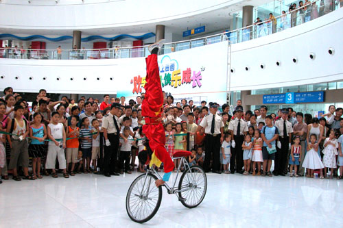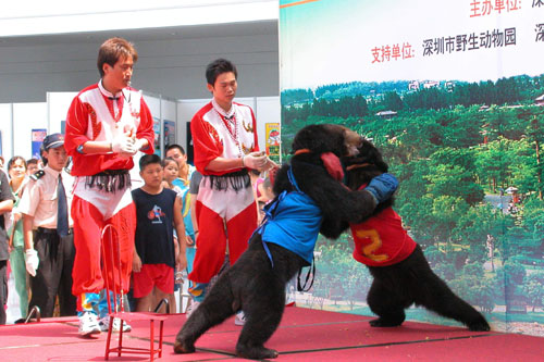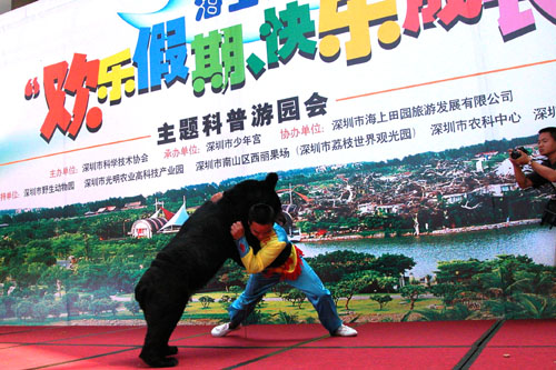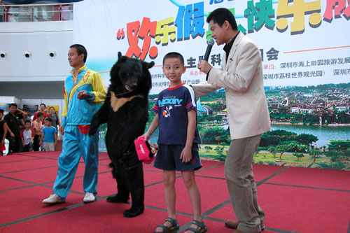 继昨天在少年宫举办的“欢乐假期、快乐成长”---主题科普游园活动开幕式上,海上田园旅游公司带来了精彩纷呈的节目后,今天深圳市野生动物园的演员们也携“动物明星”闪亮登场。在“保护自然、保护动物”的宣传理念里,小朋友们在欢笑声中度过了快乐轻松且有意义的一天。