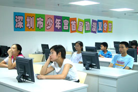 为了丰富广大中小学生署假生活,提高青少年的动漫绘画技能和动手实践能力,培养多方面的兴趣爱好,提供学生相互交流、学习、切磋、沟通、实践的机会,由深圳市少年宫举办的2005年“动漫一夏——首届动漫夏令营”活动于8月6日在少年宫新设置的六楼多媒体教室正式开营啦,营员中年龄最大的14岁,最小的仅9岁。在这里,同学们将度过令人激动、令人难忘的十一天夏令营生活;在这里,同学们将了解到有关的漫画知识、动画制作过程、经典欧美卡通电影鉴赏及漫画的电脑后期制作Photoshop,Comicworks600等软件的灵活使用;在这里,同学们将学习到有关的电脑美术知识、Photoshop CS 软件的使用、二维GIF动画的制作、FLASH 动画的制作及三维动画软件3DS知识;在这里,同学们还将参与到各种社会实践和调查活动中去,感知动漫给人们带来的欢乐,开拓眼界,学到普通课本上学不到的知识。如参加动漫活动周、参观高职院动画学院、鹏博士多媒体公司动漫工厂,考察环球数码、宝得科技游戏开发工作组等等……