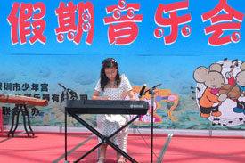 今天上午,在少年宫上演的一场高品质的器乐音乐会,使广大家长及小朋友大饱耳福。这是继昨天“2005年欢乐假期系列音乐会”首演以来的又一场精彩音乐会。此后,在8月的每个周六、周日,少年宫都会为广大少年儿童免费献上精心准备的音乐大餐。本次活动由深圳市少年宫和云南(昆明)长河乐器有限公司联合主办,将邀请在本市各个文艺比赛中获奖的部分优秀学生进行古筝、琵琶、二胡、舞蹈、钢琴、电子琴等项目的表演。