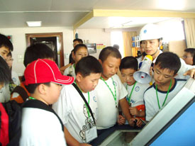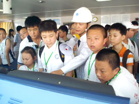 本次活动得到了深圳市少年宫领导班子的大力支持,对参加此次活动的少年儿童免收所有费用,并把这次活动作为暑期的一份特殊礼物献给本市的少年儿童。8月3日这一天,孩子们有幸登上了全国最大、设备最先进的海事巡逻船“海巡31”进行参观,聆听海事专家讲解海事知识,并和船上的工作人员合影留念,度过了愉快的一天。