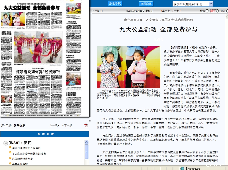 媒体报道:深圳市少年宫2012春节青少年服务公益活动周活动内容