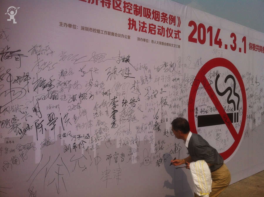 3月1日上午,市控烟办在少年宫举行《深圳经济特区控制吸烟条例》执法启动仪式。市人大主任白天、副主任蒋宇扬、副巿长陈彪出席,执法责任单位巿卫计委、巿交委、市文体旅游局、巿巿场监督局、巿公安局、巿城管局参加活动。现场设有烟草危害宣传,专业戒烟咨询和免费测血压等咨询。