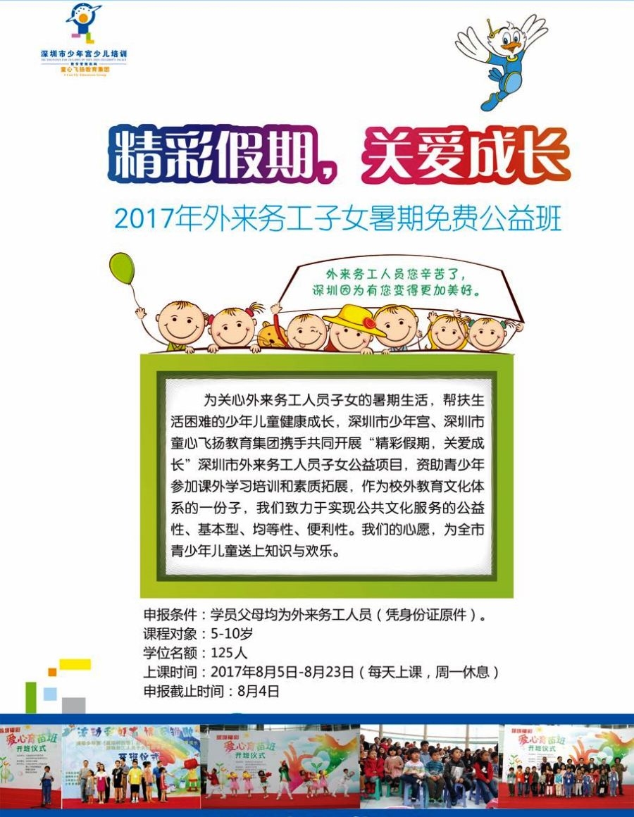 “精彩假期,关爱成长”2017年外来务工人员子女暑期公益班接受报名