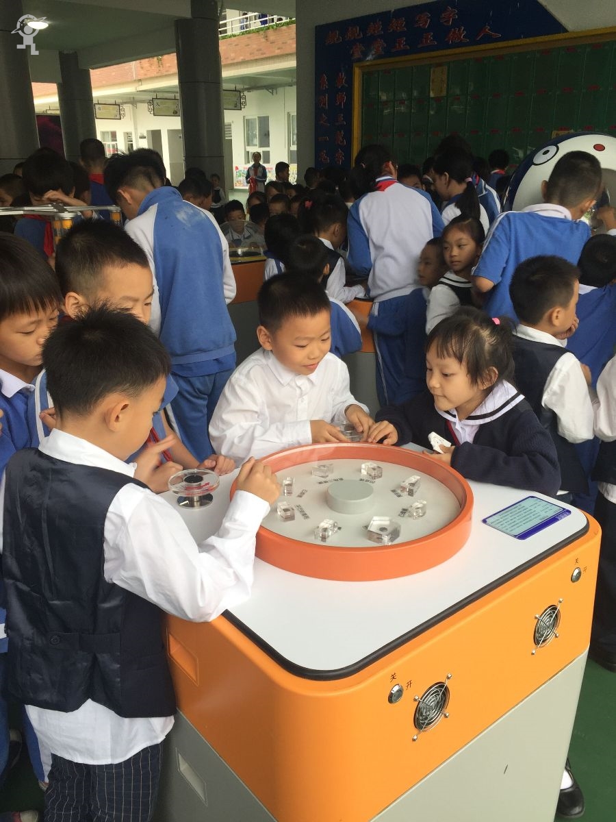2017年11月11日,“流动少年宫”走进了龙岗区盛平小学。本次活动为期两周,孩子们足不出校,便能体验到少年宫的各类科技展品和艺术展览。“流动少年宫”进校园活动自今年6月启动以来,已经在福田、南山、龙岗各区的学校顺利开展,深受老师和学生们的欢迎和喜爱。“流动少年宫“主要分为流动科技馆和流动艺术馆两个部分。流动科技馆通过可移动科技展品的在校展示、组织科普实验活动等方式,将充满趣味体验式的科普教育送到孩子们中间,让孩子们学习科学知识、体验科技乐趣。流动艺术馆依托少年宫文化艺术培训和艺术团队,合理利用和整合社会资源,根据孩子们的需求,精心策划组织包括艺术展览、文艺演出、团队艺术交流等进入校园,让孩子们畅享艺术魅力。