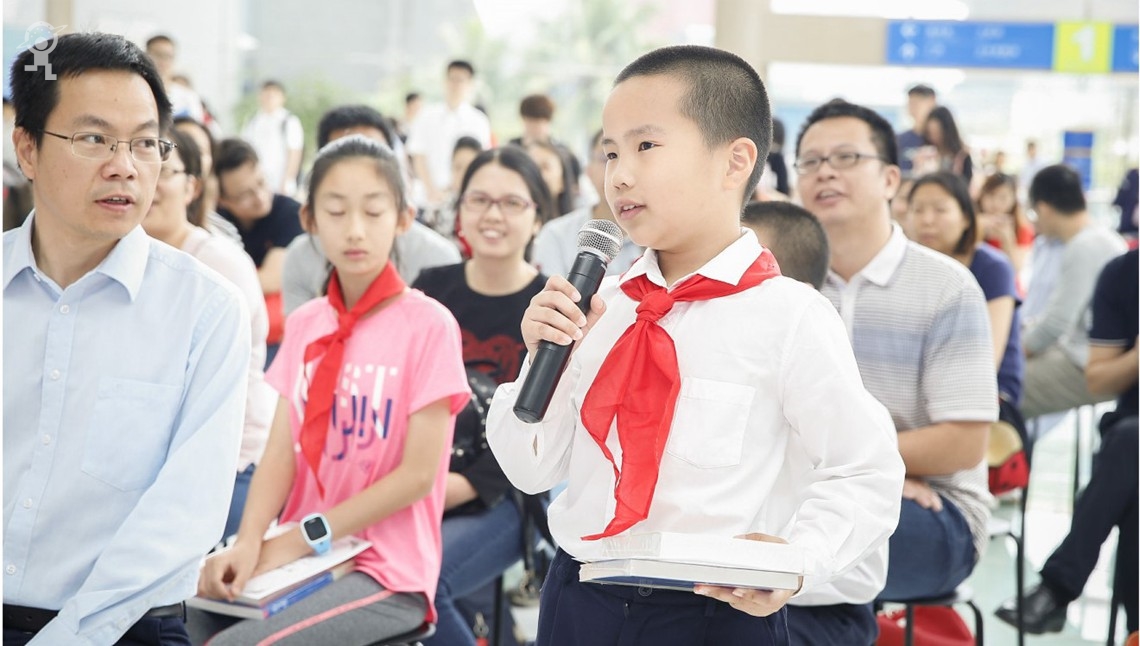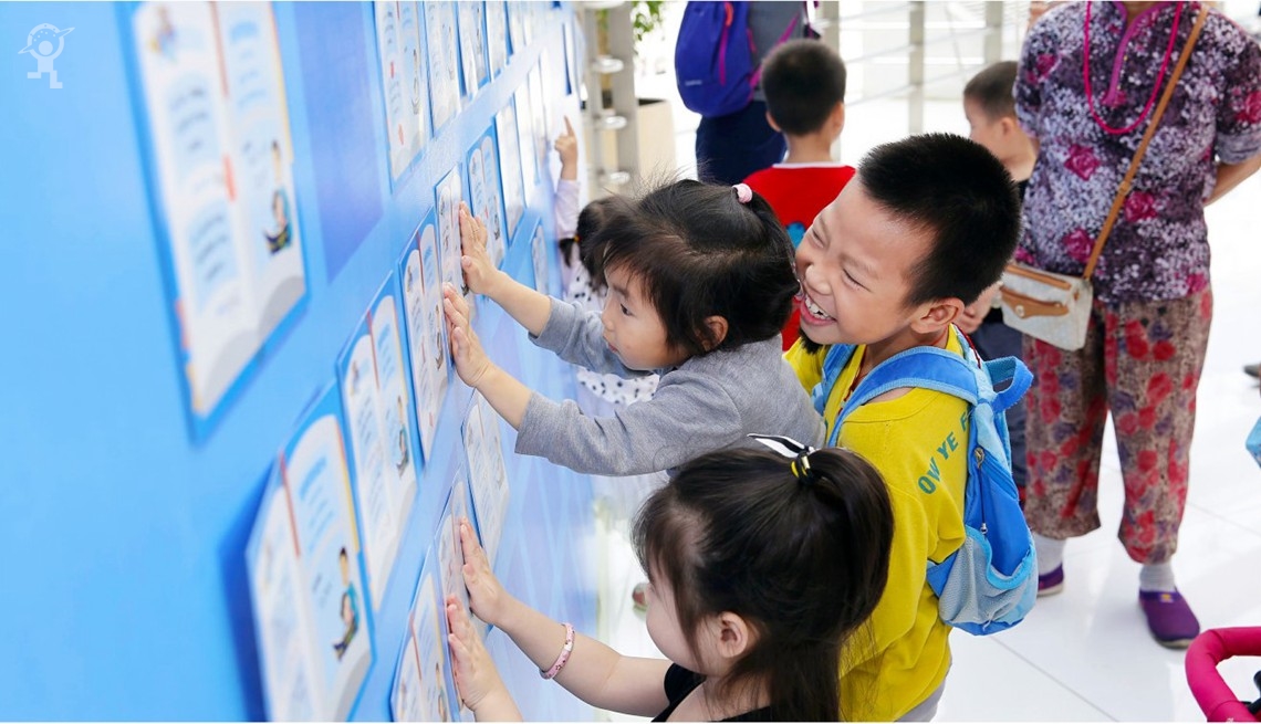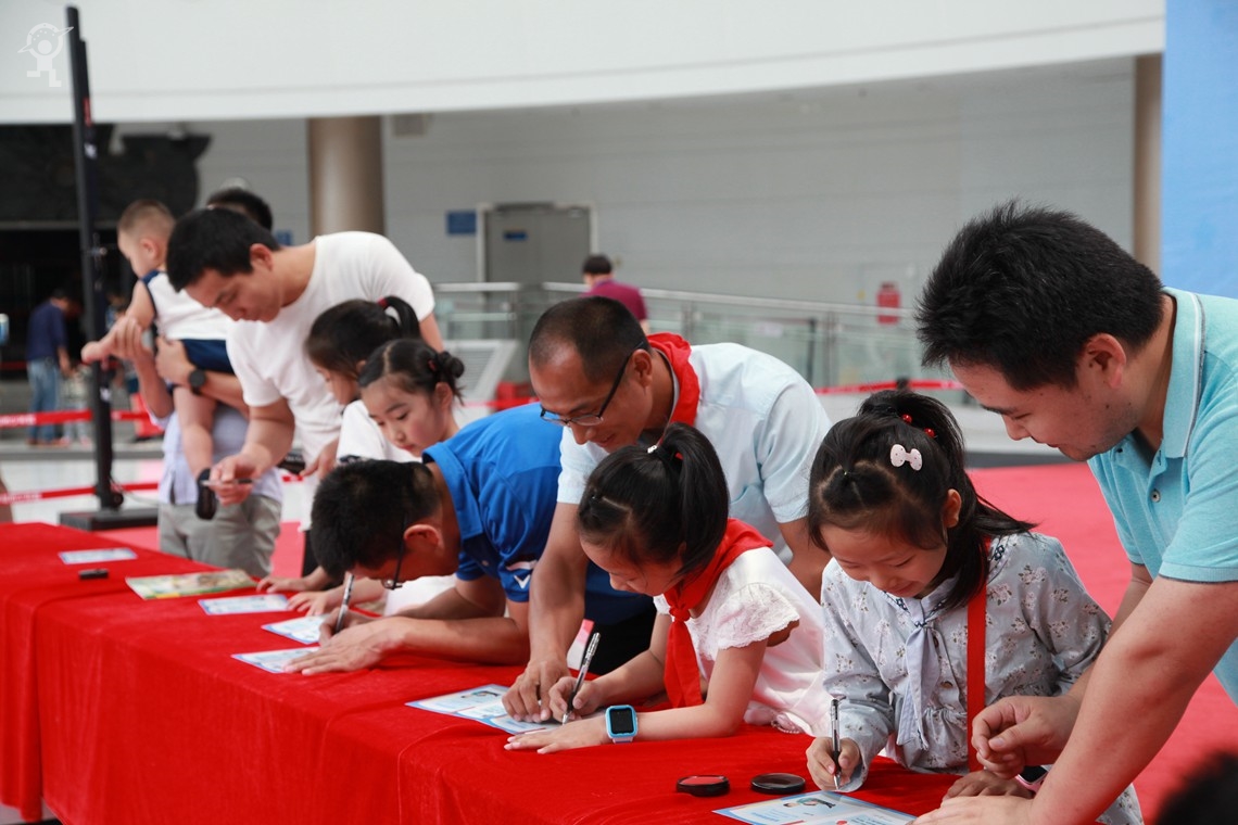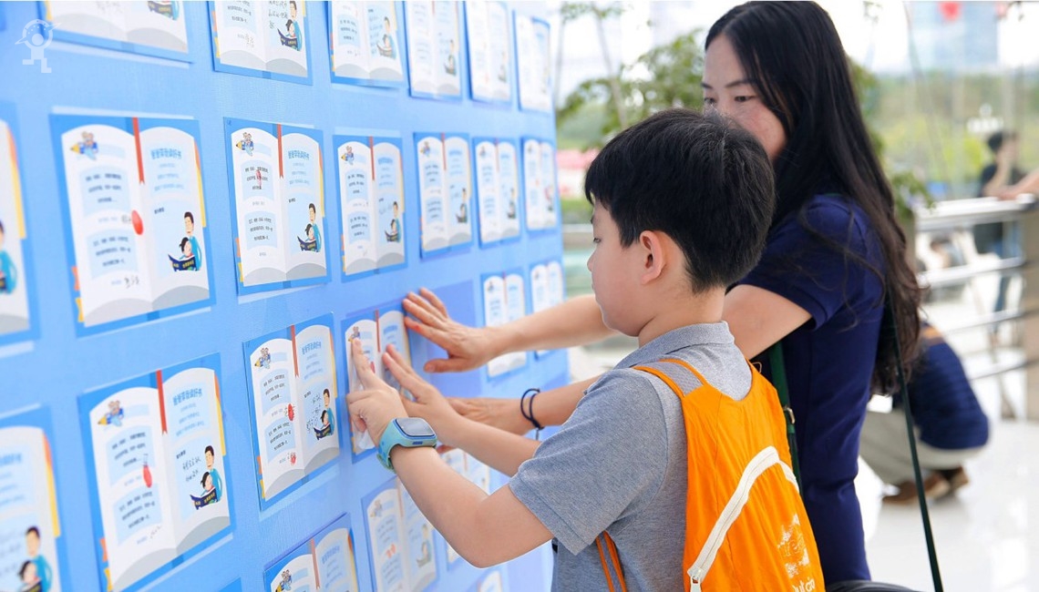 除仪式外,活动现场设置的读书调查、陪读倡议与陪读承诺一体墙,甚是醒目,吸引了众多年轻的爸爸妈妈带着孩子排队参与。