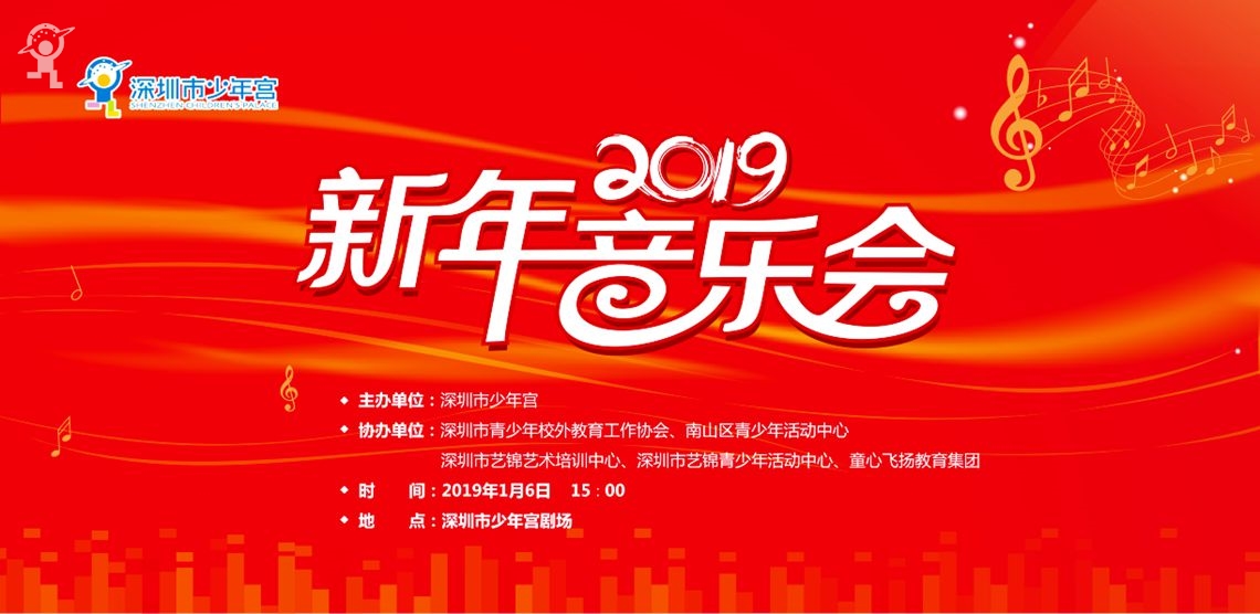 亲爱的家长和小朋友们,深圳市少年宫现向您们发出诚挚的邀请:欢迎您们1月6日下午前来深圳市少年宫,免费参加我们的2019新年音乐会!
