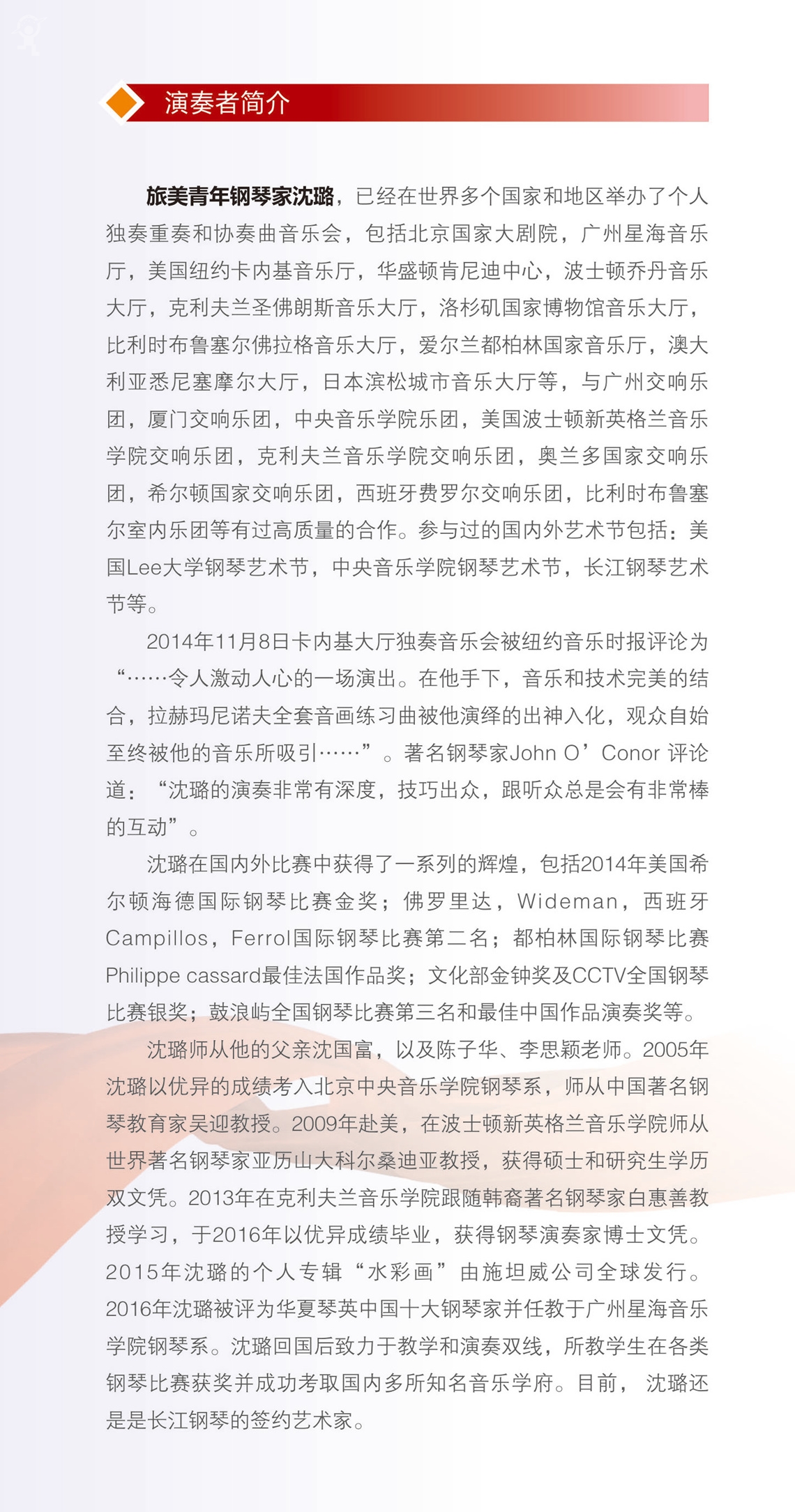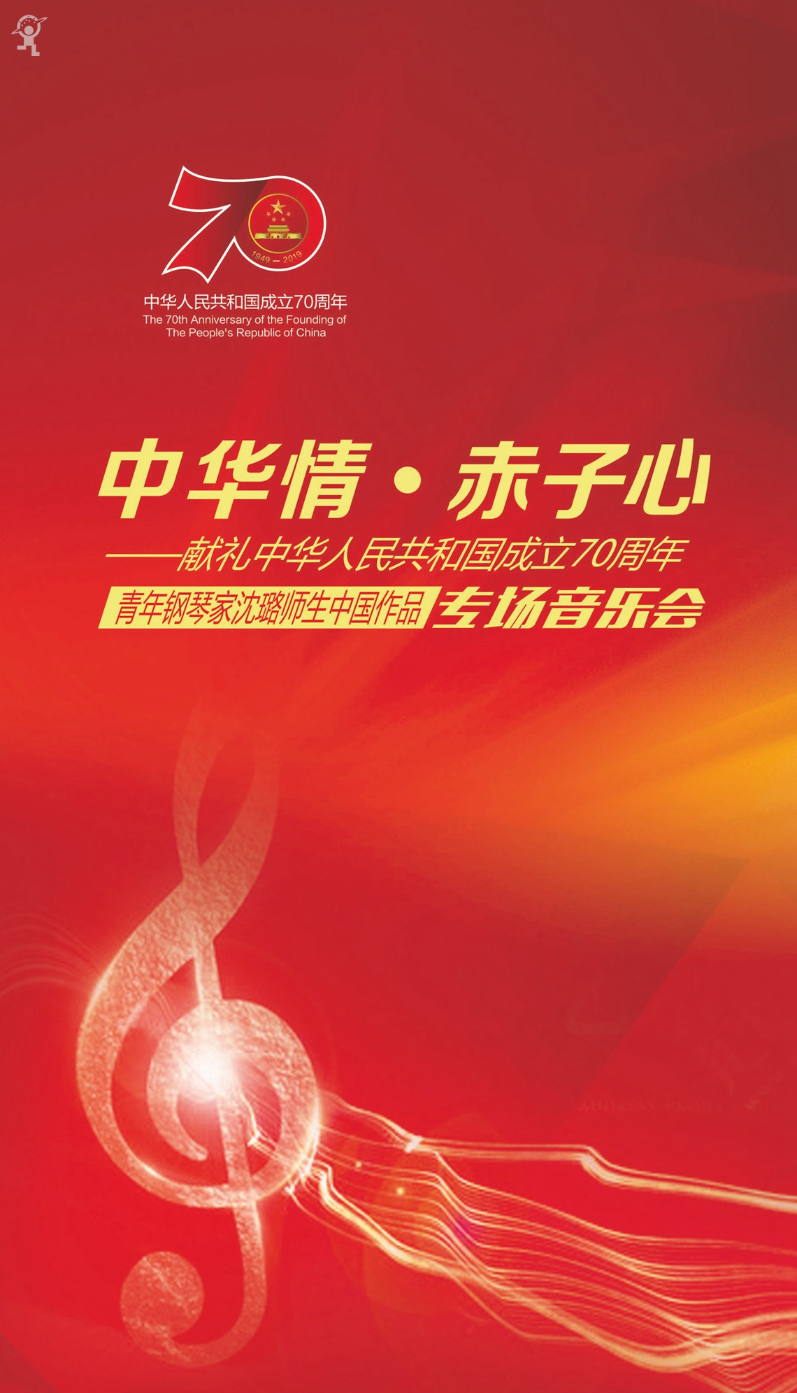 演出内容:“中华情·赤子心——献礼中华人民共和国成立七十周年”青年钢琴家沈璐师生中国作品专场音乐会